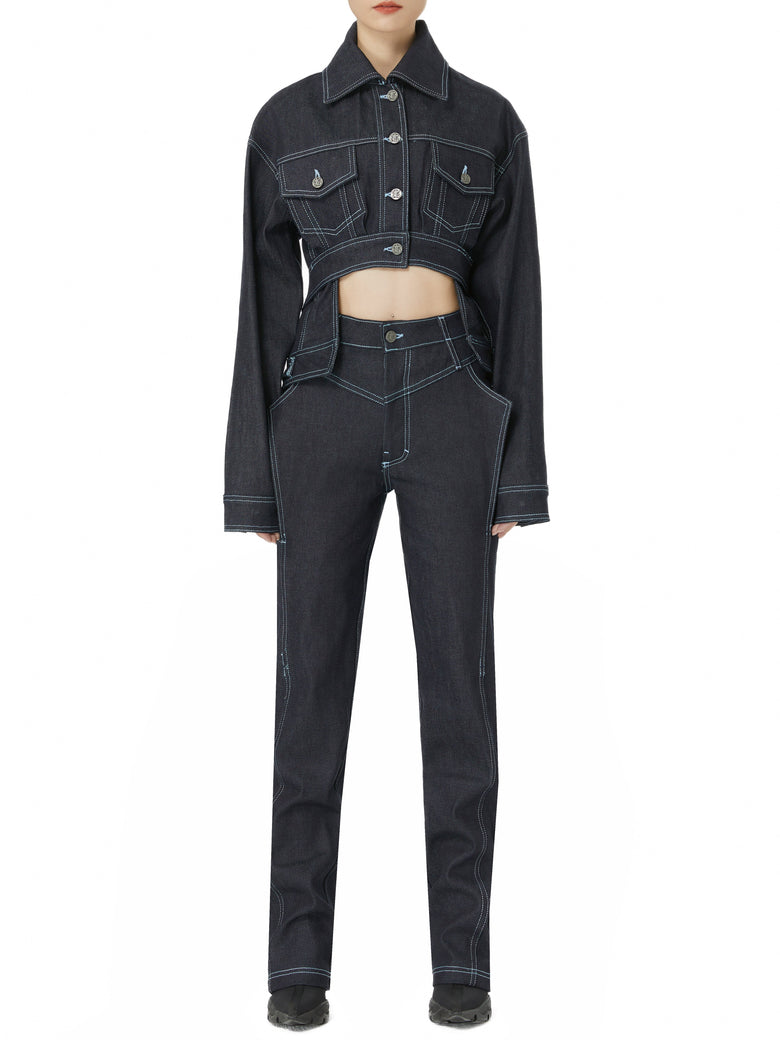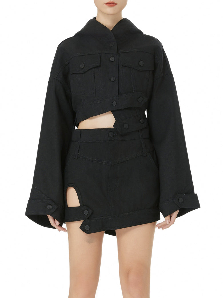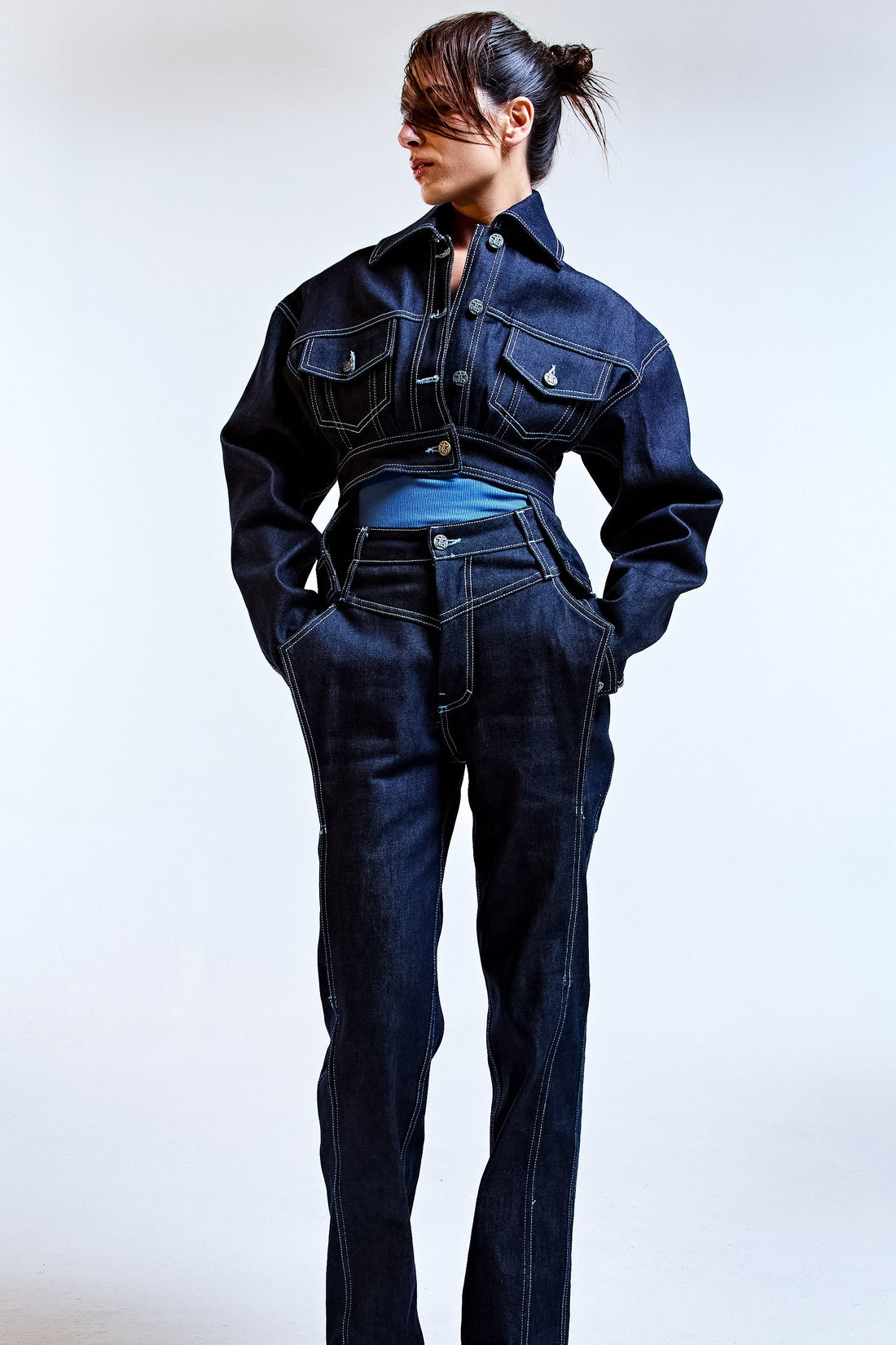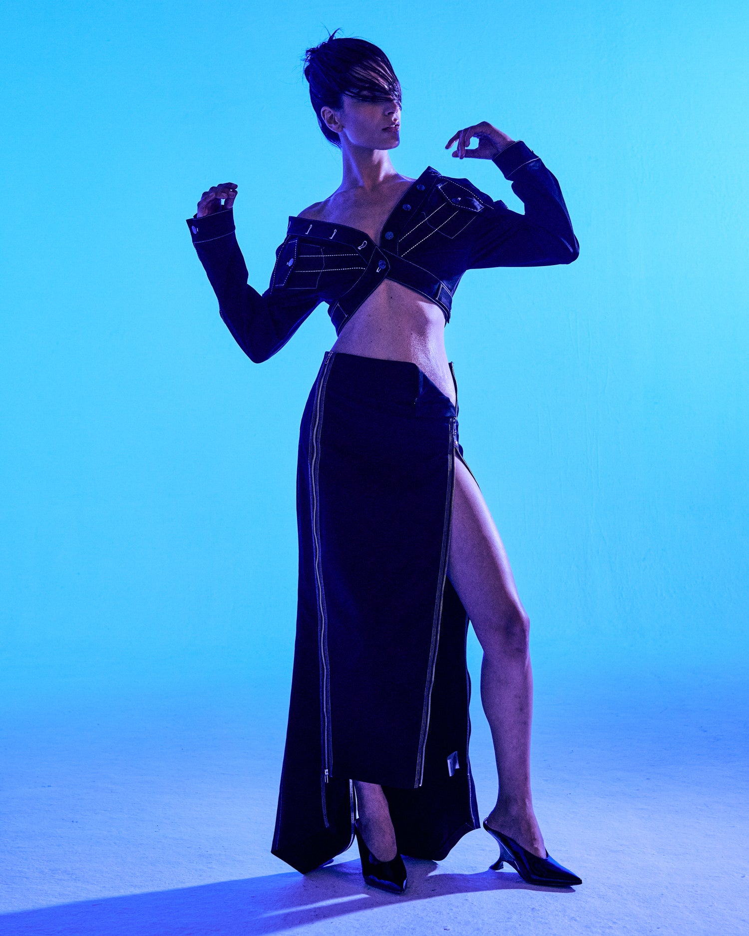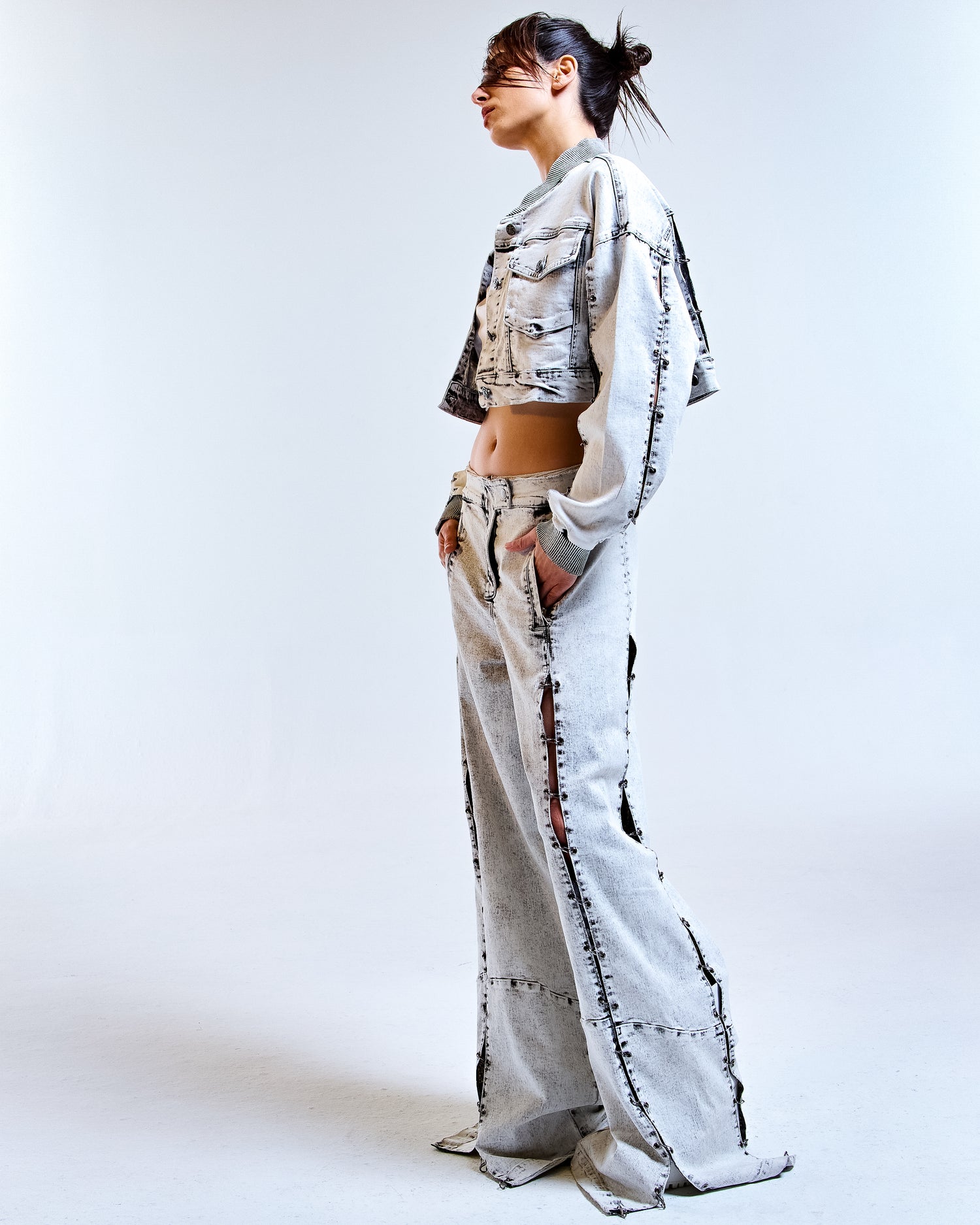 This design explores a convertible approach to dressing—where garments shift, adapt, and redefine their silhouette through modular components. Removable panels allow a single piece to transition between forms, offering versatility without compromising structure or craft. It introduces new possibilities for proportion, movement, and expression, inviting wearers to engage with clothing as an evolving system rather than a static object.