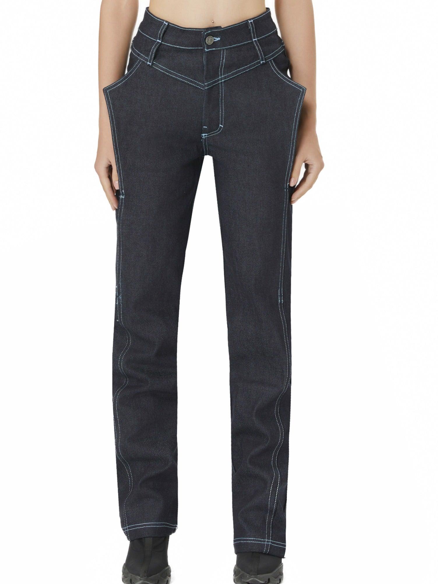 Architectural denim meets body celebration in Gao's Indigo Jean—an American-made masterpiece engineered for elevated silhouettes. Featuring signature wing construction that architecturally enhances your natural silhouette, these jeans command height designed specifically for heel pairing.