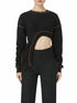 The Long-Sleeve Waterfall Sweatshirt distorts the familiar, transforming a staple into sculpture. With art deco symmetry fractured by off-shoulder volume and precise asymmetry, this piece is designed to shift perspective.