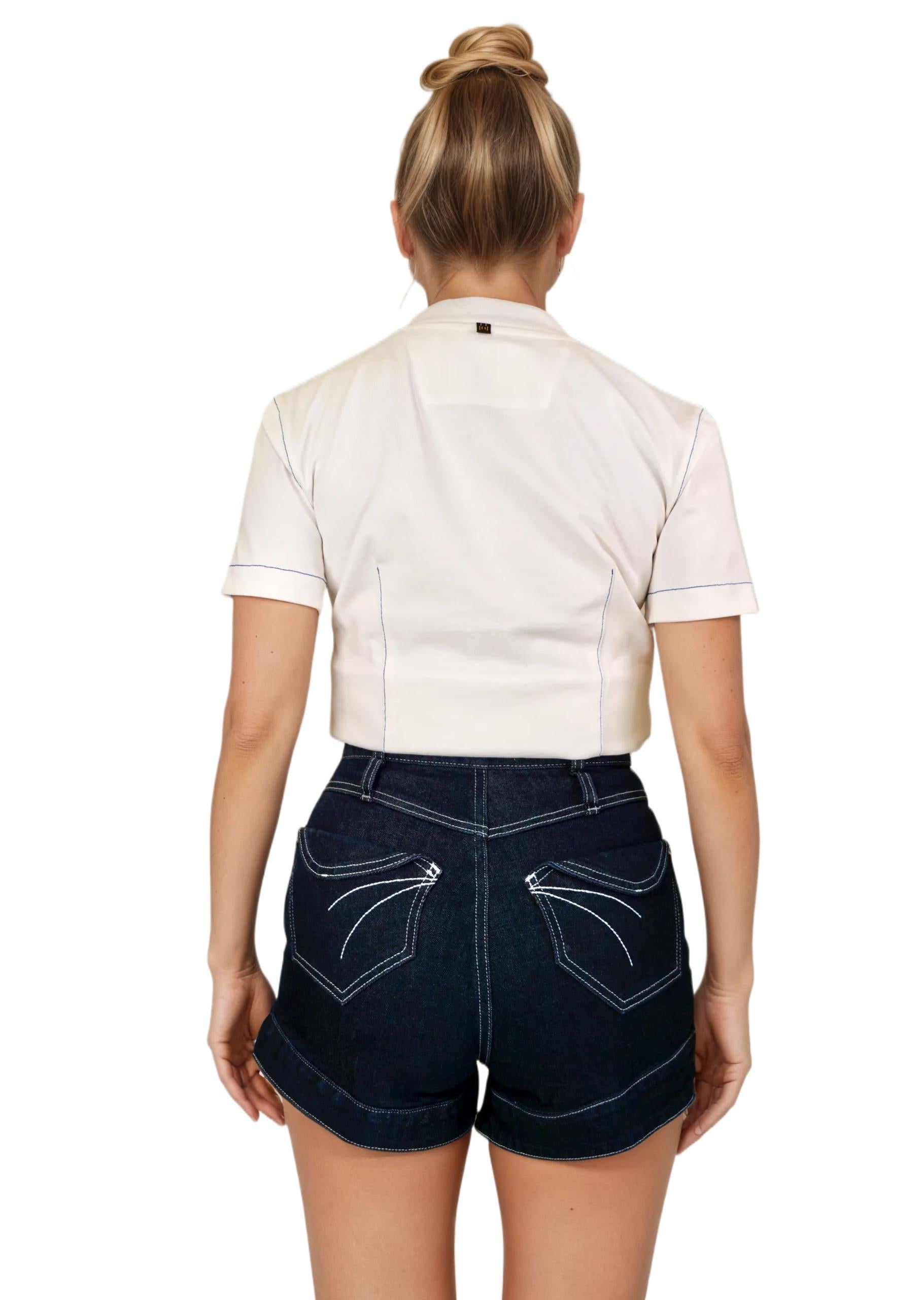 These aren’t your average denim shorts. Gao’s asymmetrical denim cut-offs come with this bold angled hem and deconstructed strap detail that bring just the right amount of edge.